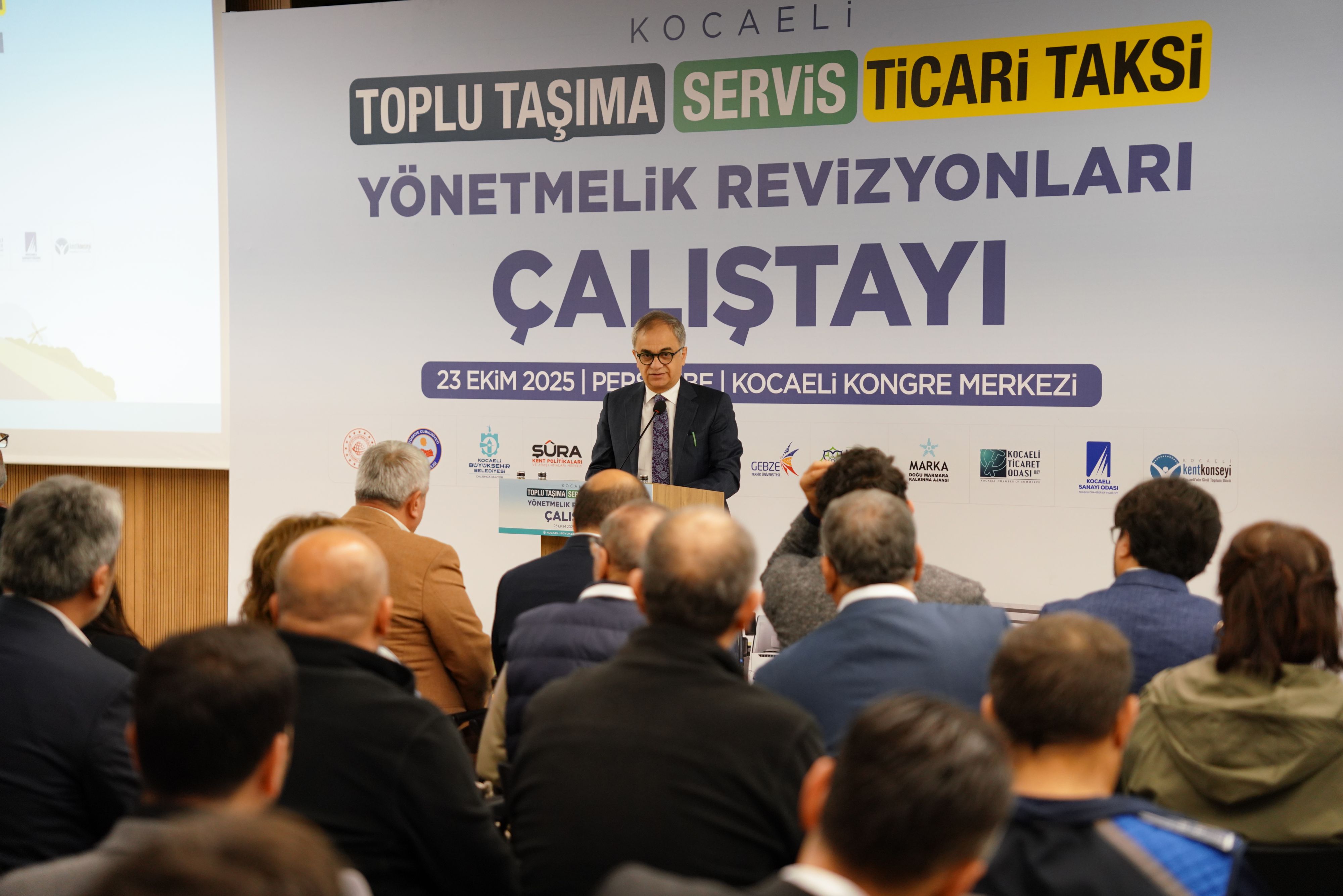 Kentte toplu taşıma, servis ve ticari taksi sistemlerinin güvenli, erişilebilir ve sürdürülebilir bir yapıya kavuşturulması amacıyla tüm paydaşların katılımıyla “Kocaeli Ulaşım Mevzuatı Revizyonu Çalıştayı” gerçekleştirildi.